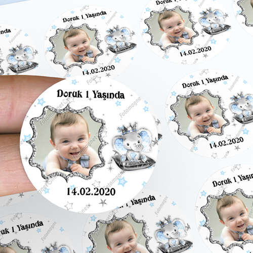 موضوع فيل متوج بتاج الأمير - مربع - مرحبا بالطفل - تذكار - مغناطيس