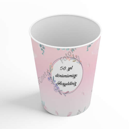 كوب كرتوني بمفهوم وردي مع إطار زهرة - علامة هدية