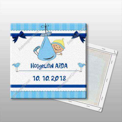 أزرق - مرحبا بالطفل - طباعة على قماش