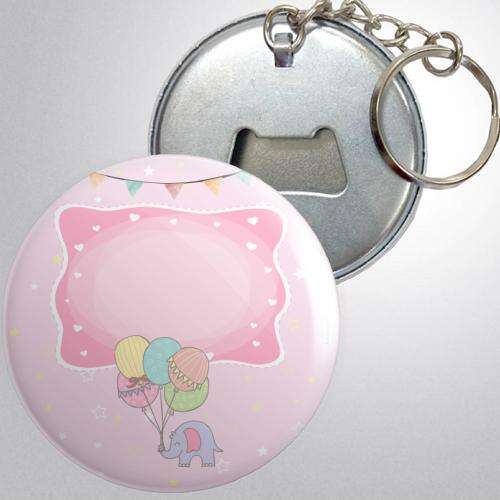 ثيم الترحيب بالطفل بالفيل البالون الوردي - معدن - فتاحة زجاجات - سلاسل المفاتيح