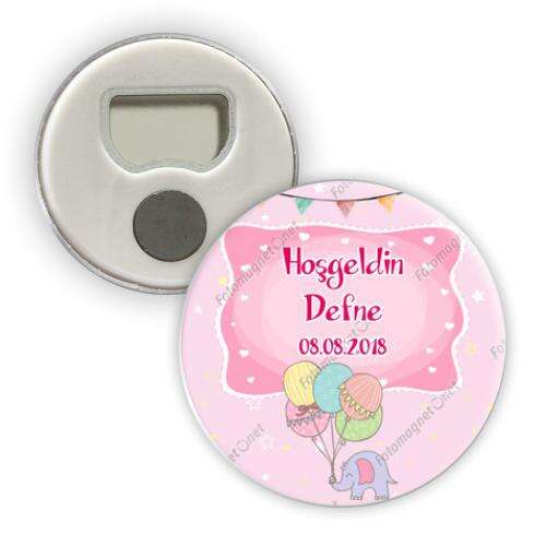 موضوع فيل البالون الوردي - مرحبًا بالطفل - مغناطيس - فتاحة زجاجة