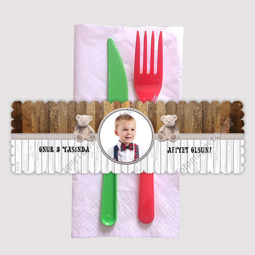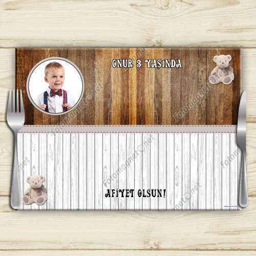 موضوع دب لطيف خشب أبيض مزخرف - منديل طعام