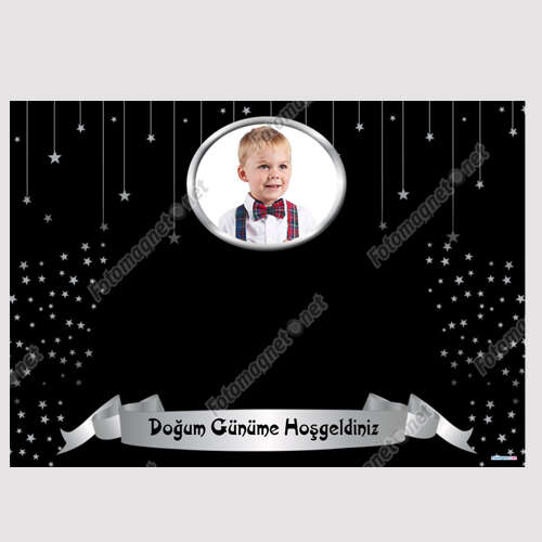 ملصق بتصميم نجمة سوداء فضية - أفقي - زينة بابية