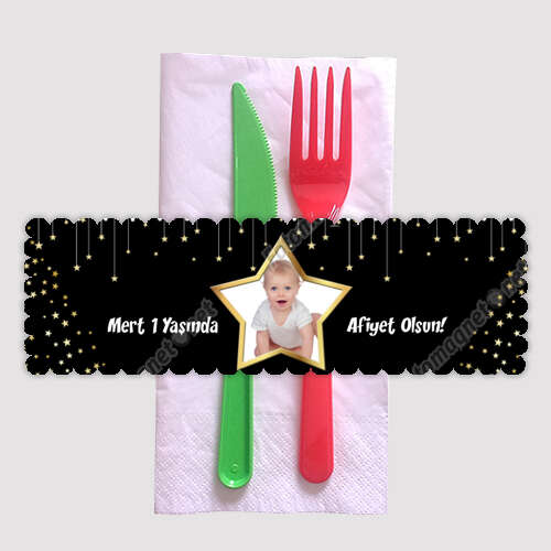 ورقة كوب مع تسمية ملفوفة بإطار نجمي أسود دوري