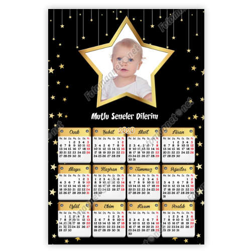 تقويم مغناطيسي 2024 بإطار نجمي أسود دوري