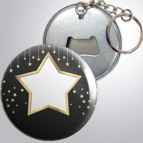 نجمة إطار سوداء ذهبية - بدون صورة - معدن - فتاحة - سلاسل المفاتيح