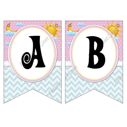Sun and Moon Themed Birthday - Banner - Flag - Set