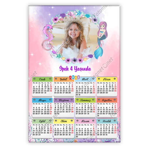 Mermaid and Seahorse Themed 2024 Calendar Magnet