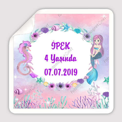Mermaid and Seahorse Themed - Photo Frameless - Square - Sticker