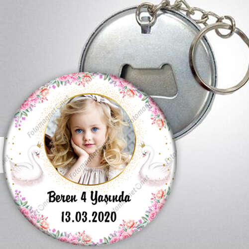 Pink Flowered Koala Themed - Photo - Metal - Opener - Keychain