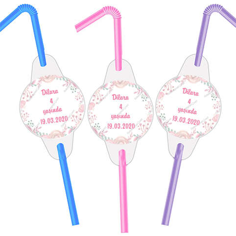 Pink Roses Themed - Curled Straw