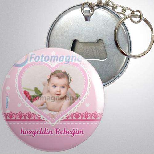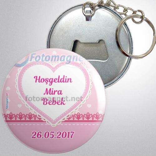Baby Shower Pink Heart Themed - Metal - Bottle Opener - Keychain - Photoless