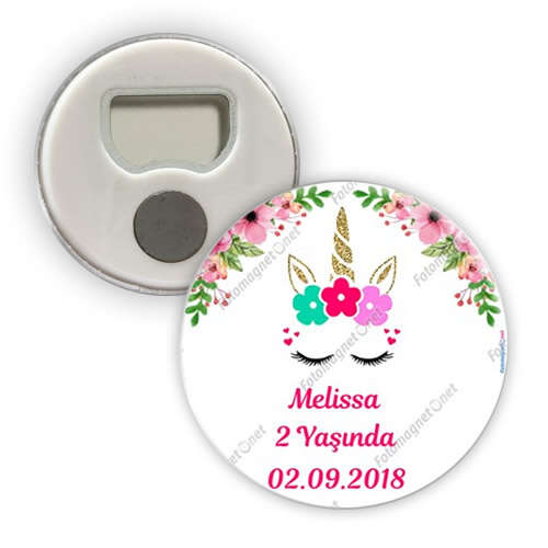Unicorn Themed Floral - Photoless - Magnet - Bottle Opener