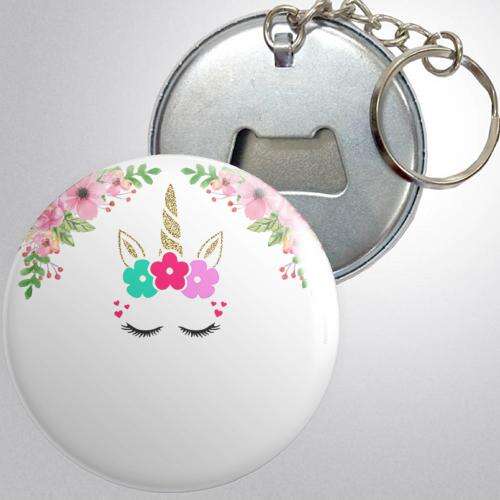 Unicorn Themed Floral - Metal - Opener - Keychain