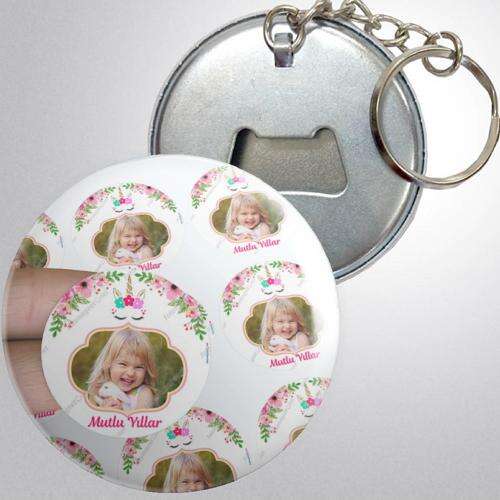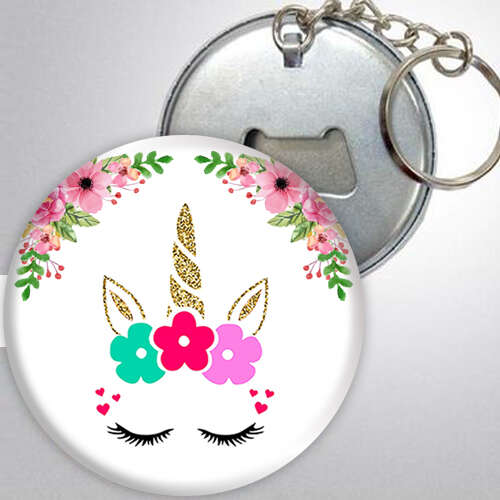 Unicorn Themed Floral - Photoless - Metal - Opener - Keychain