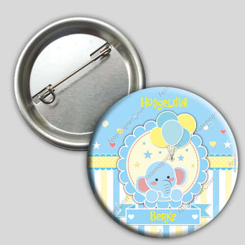 Blue Elephant Themed Baby Shower - Pin Button Badge