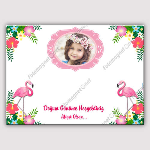 Colorful Flowered Flamingo Themed - Horizontal - Poster - Door Ornament