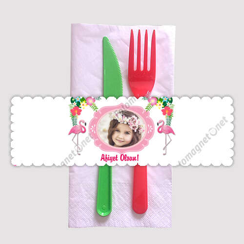 Colorful Flowered Flamingo Themed - Napkin Wrap