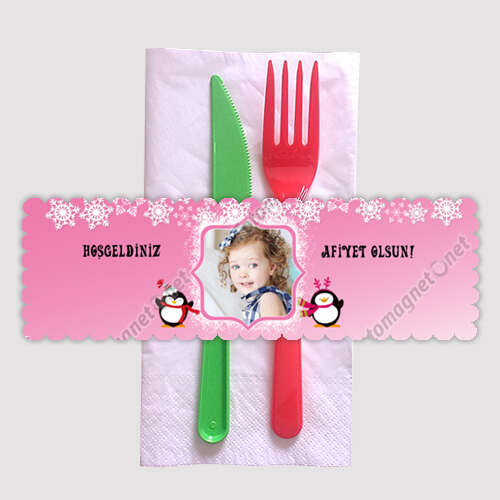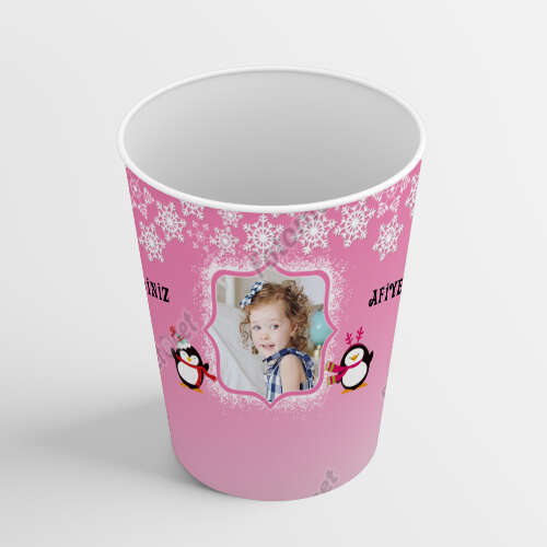 Penguin Themed Pink - Paper Cup - Wrapping Label
