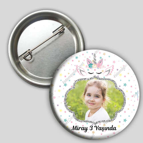 Unicorn Themed Silver Glittery - Photo - Pin Button