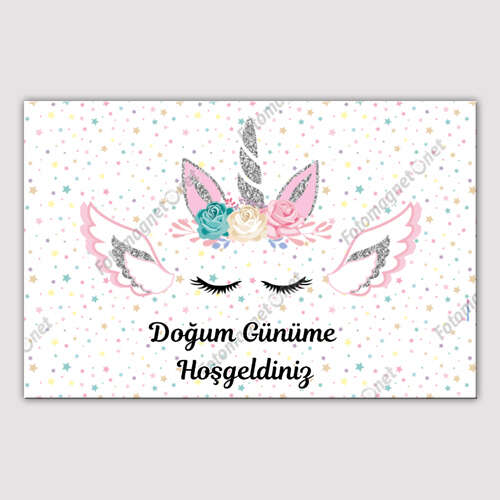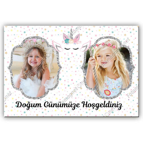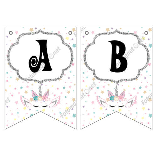 Unicorn Themed Silver Glittery - Photo - Banner - Flag - Set of 2