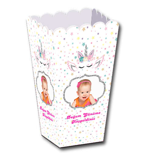 Unicorn Themed Silver Glittery - Photo - Popcorn Box
