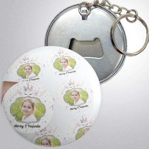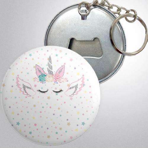 Unicorn Themed Silver Glittering - Photo Printed - Metal - Opener - Keychain