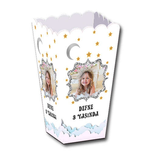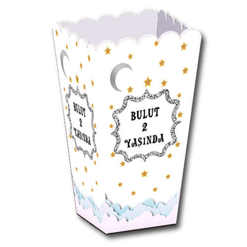 Yıldız Ve Bulutlar Temalı - Fotoğrafsız - Popcorn Kutusu
