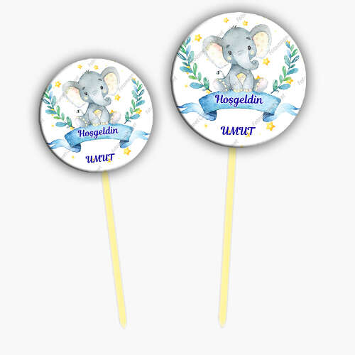 Sevimli Fil Ve Yıldızlar Temalı - Hoş Geldin Bebek - Kürdan Süs