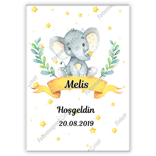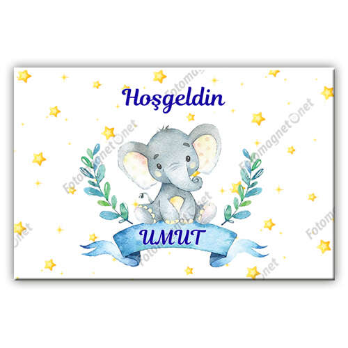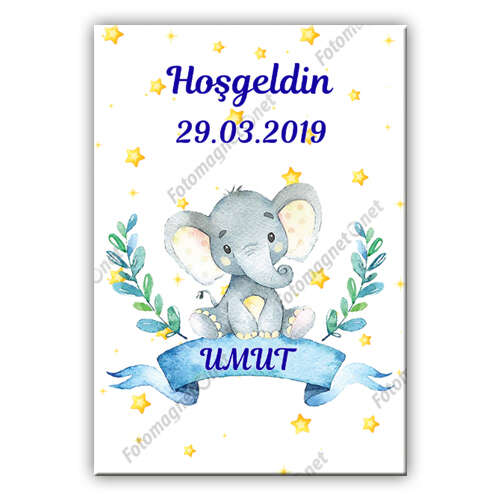 Sevimli Fil Ve Yıldızlar Temalı - Hoş Geldin Bebek - Magnet - Açacak