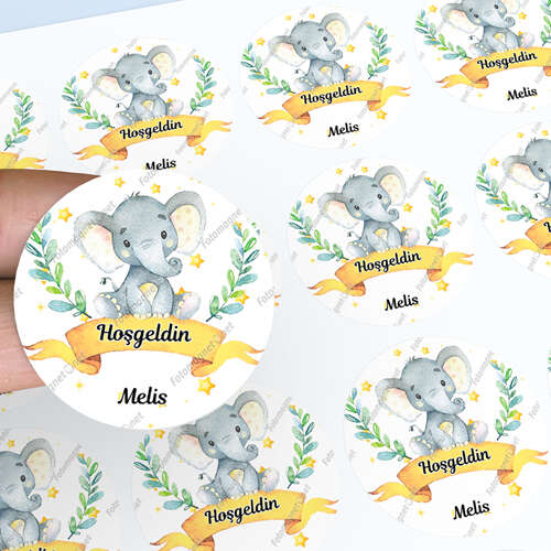 Sevimli Fil Ve Yıldızlar Temalı - Hoş Geldin Bebek - Sticker