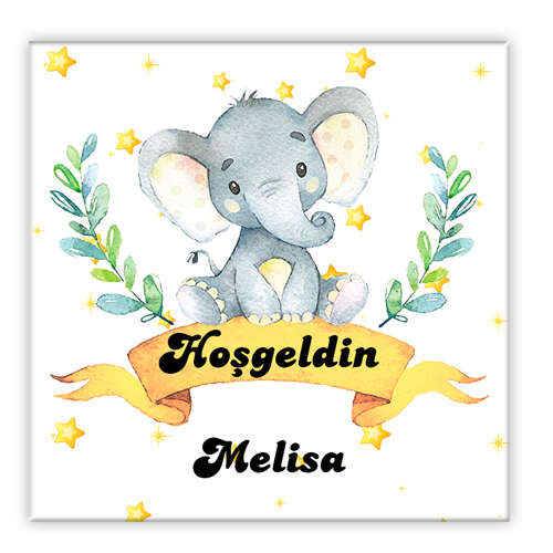 Sevimli Fil Ve Yıldızlar Temalı - Hoş Geldin Bebek - Kare - Magnet