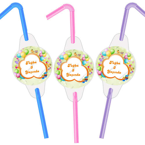 Dondurma Temalı Balonlu - Fotoğrafsız - Pipet