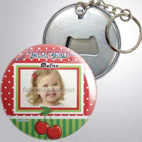 Kiraz Temalı - Fotoğraflı - Metal - Açacak - Anahtarlık