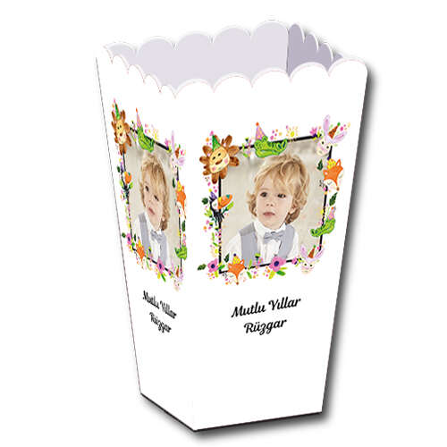 Sevimli Hayvanlar Temalı - Fotoğraflı - Popcorn Kutusu