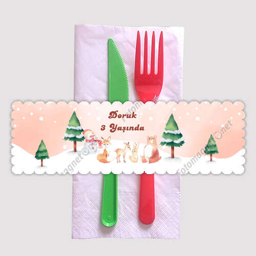 Kış Temalı - Karton Bardak - Sargı Etiketi