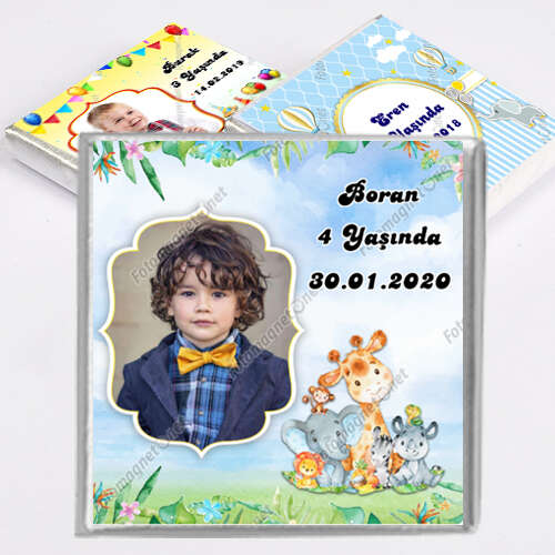 Safari Sevimli Hayvanlar Temalı - 2 Fotoğraflı - Sargılı Çikolata Etiketi