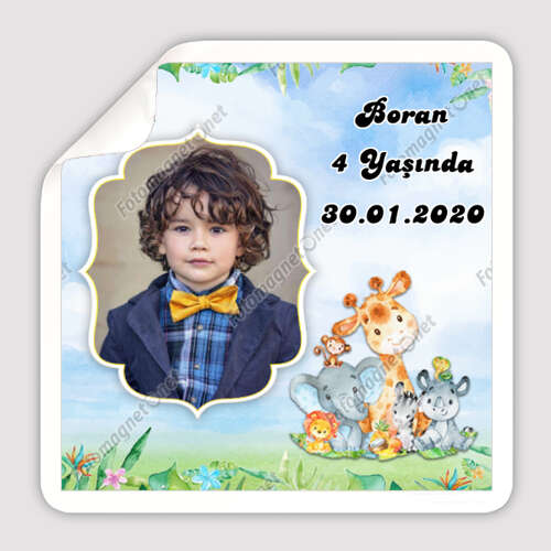 Safari Sevimli Hayvanlar Temalı - 2 Fotoğraflı - Kare - Sticker
