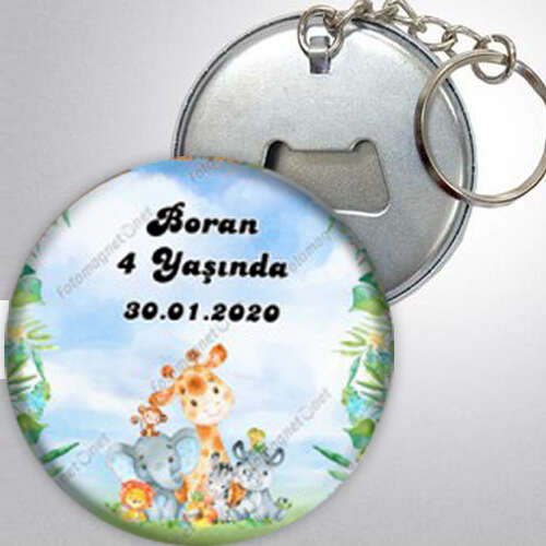 Safari Sevimli Hayvanlar Temalı - Fotoğrafsız - Metal - Açacak - Anahtarlık