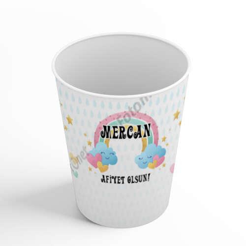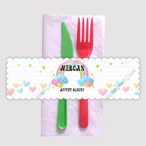 Gökkuşağı Temalı - Hoş Geldin Bebek - Karton Bardak - Sargı Etiketi