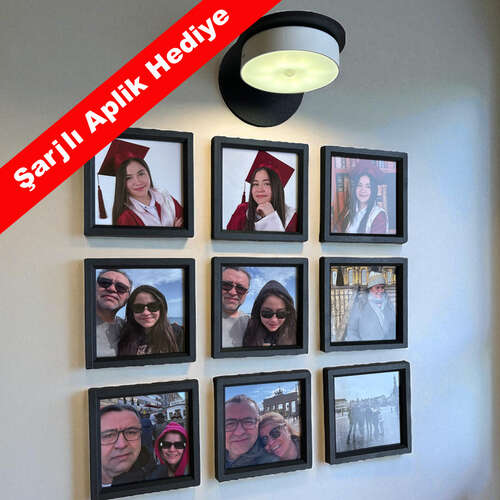 9 adet 10x10 cm Yapışan Siyah Çerçeve Aplik Hediyeli