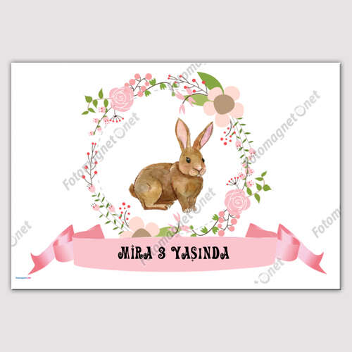 Pembe Çiçekler Ve Tavşan Temalı Poster