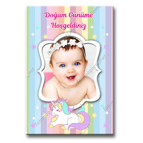 Unicorn Temalı Renkli - Dikey - Poster - Kapı Süsü