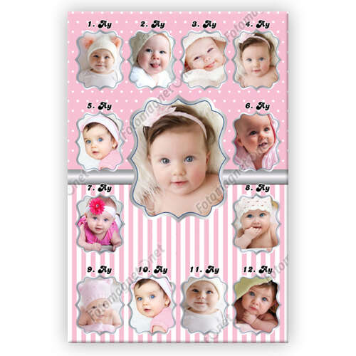 12 Ay Temalı Pembe Puantiyeli - Poster - Kapı Süsü