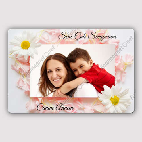 9 Adet 7x8 Cm Siyah Çerçeveli Annem Yazılı Pola Magnet