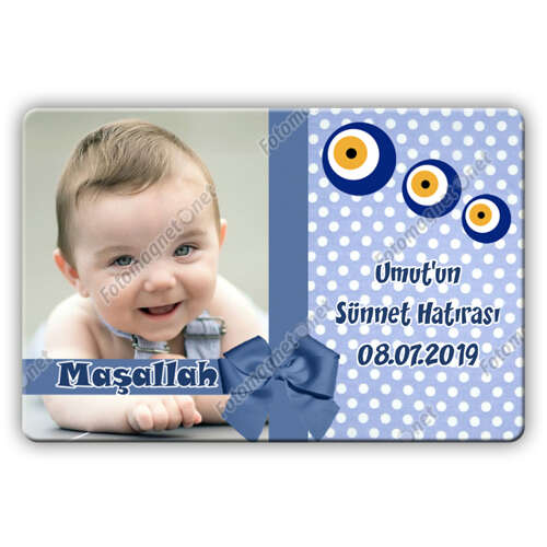 Sünnet Temalı Nazar Boncuklu - Fotoğraflı - Kare - Magnet