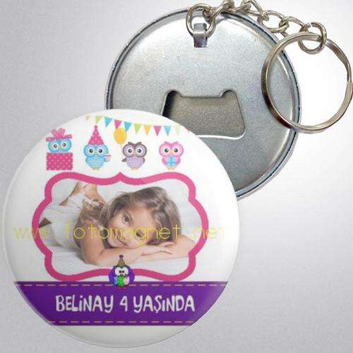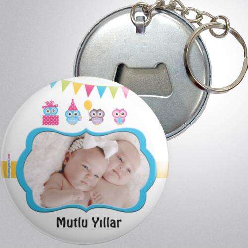 Baykuş Ailesi Temalı - Fotoğraflı - Metal - Açacak - Anahtarlık