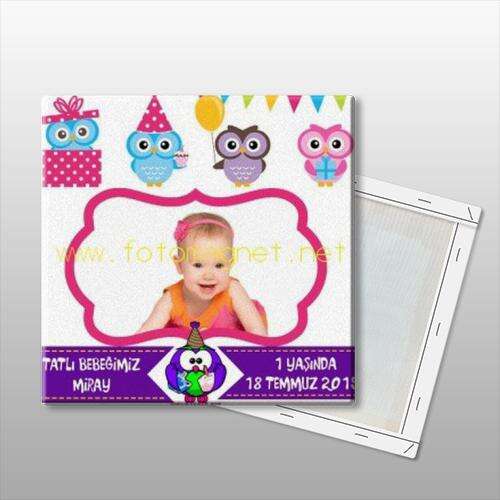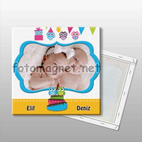 Baykuş Ailesi Temalı - Fotoğraflı - Kanvas Tablo