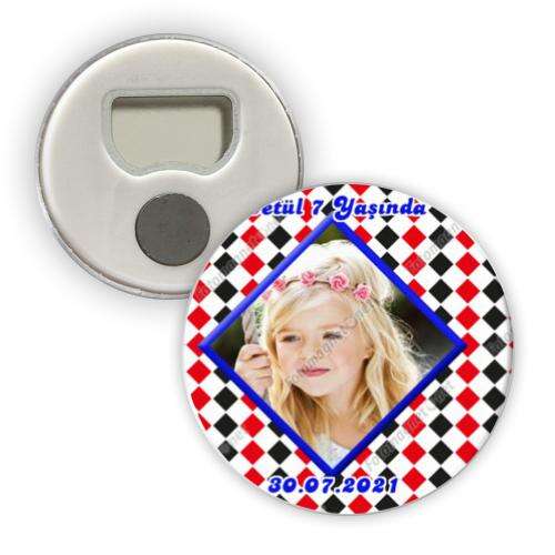 Kırmızı Mavi Dama Desenli - Metal - Magnet - Açacak