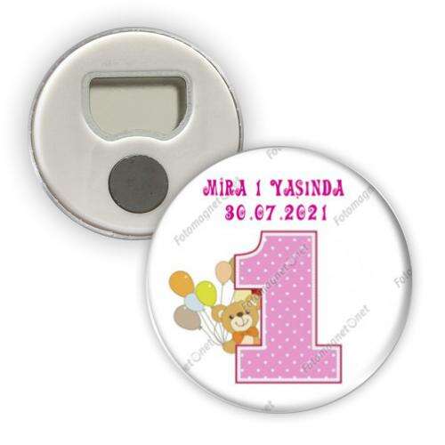 Bir Yaş Balonlu Ayıcık Temalı - Metal - Magnet - Açacak